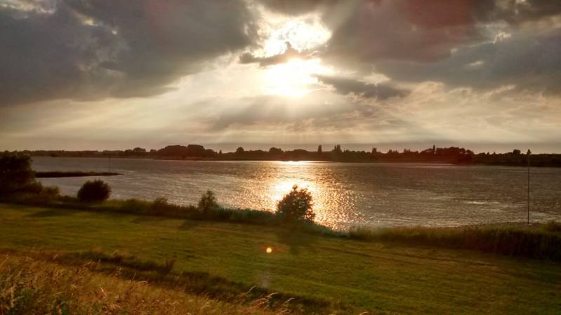 Ik stond afgelopen dinsdag op een zandstrandje aan de Waal. Ik moest ineens aan dit blog denken, was het bijna vergeten. Er schoot me een herinnering te binnen aan een blog waarin ik meerdere malen checkte of er afgescheidenheid was. Het viel me op dat het op dit herinnerings-moment de heldere lucht, de zon en de felle groenen kleuren alles een 'gouden gloed' gaven.
